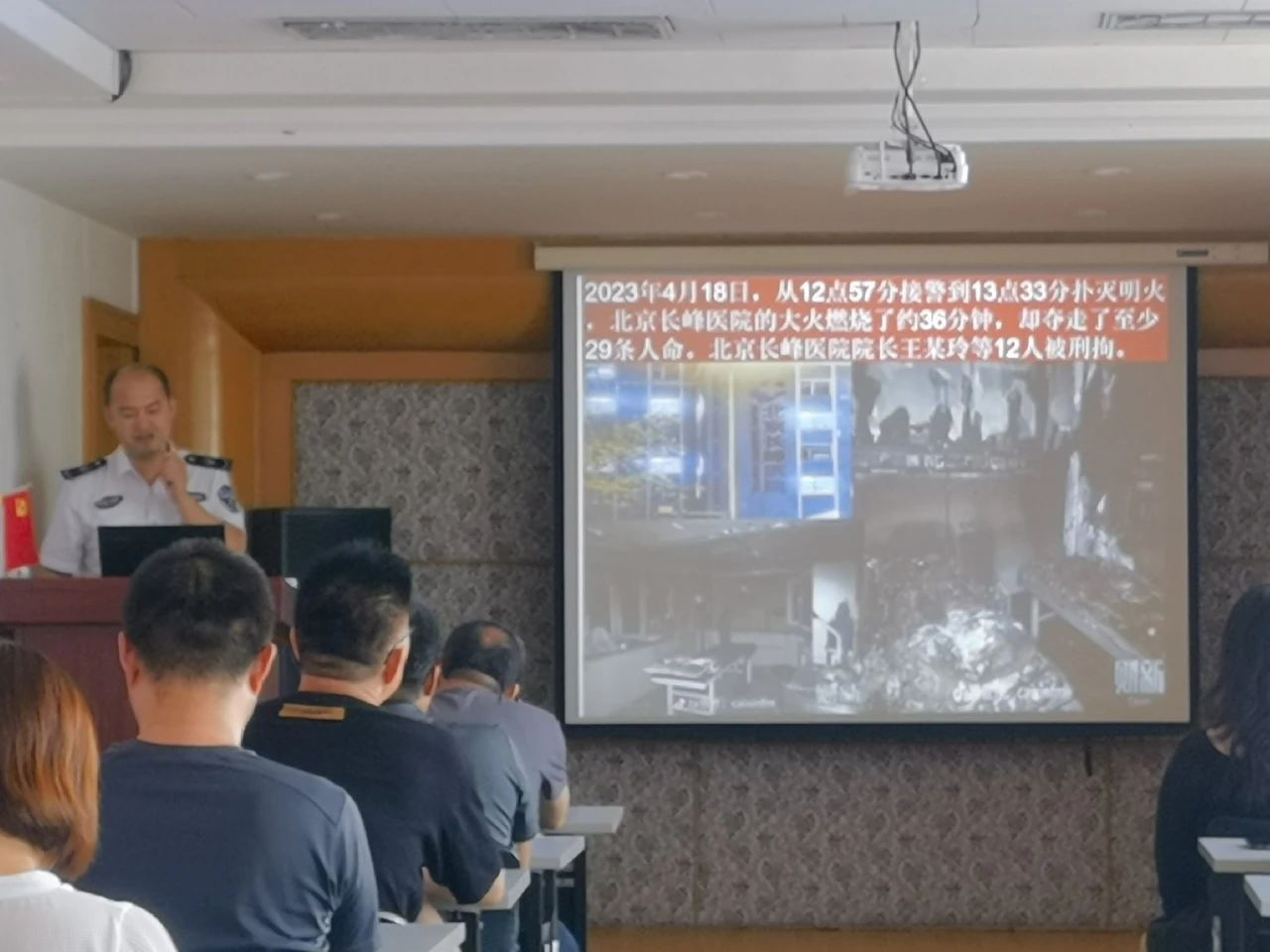 宣講會上,周教官為大家普及了消防知識,通過“北京某醫院大火”、“央視大樓火災”等火災現場圖片令在座所有人深刻認識到火災的無情與可怕。周教官結合工作和生活實際,從如何預防電氣火災、如何自救與逃生、如何正確使用消防器材等方面均做了深入淺出的講授,并特別提醒全體員工要始終保持安全意識,堅決克服盲目樂觀,杜絕松懈麻痹,真切落實各項防范措施,確保人身與財產安全。